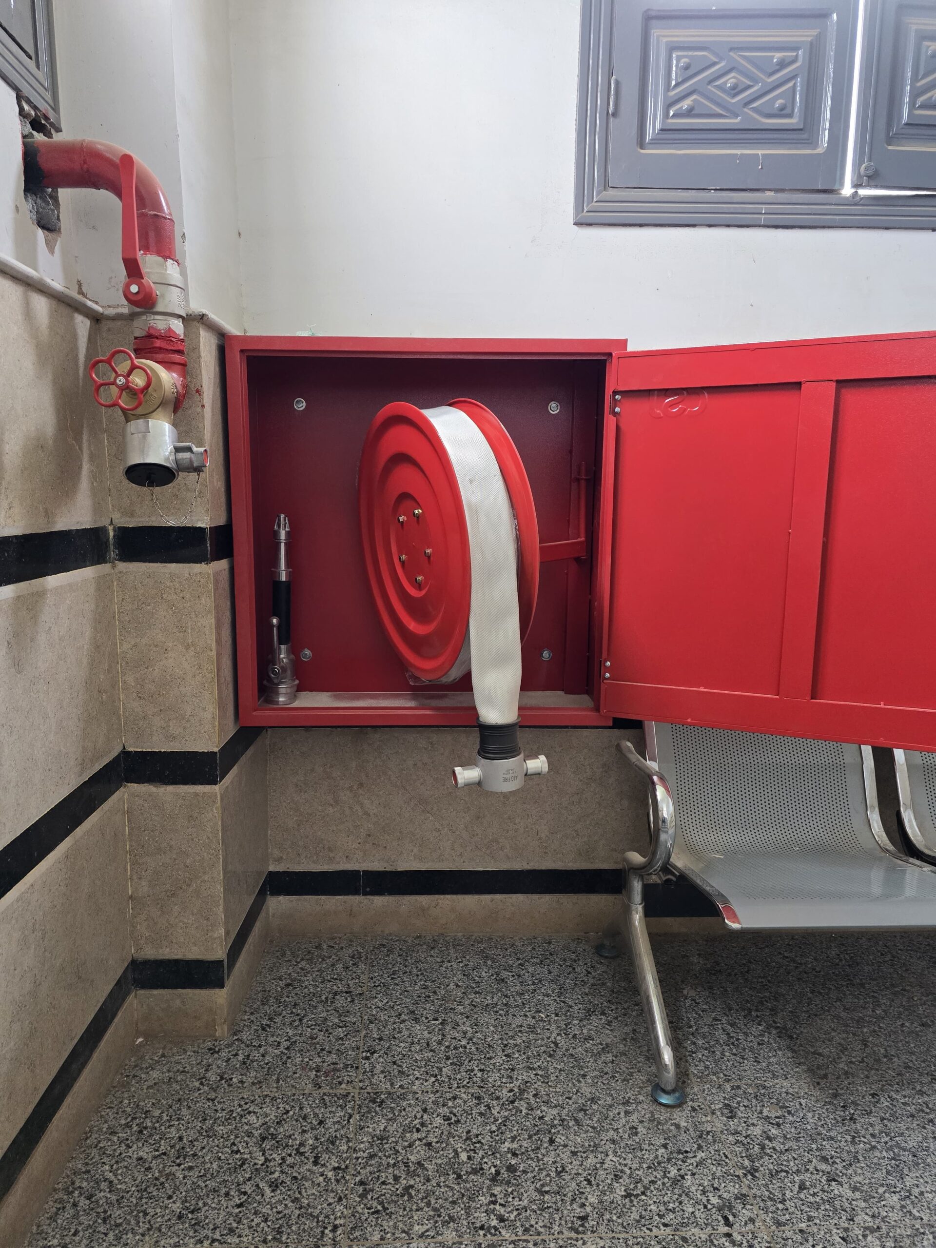 We are proud to have installed a comprehensive firefighting system at Al Jam’ia Al Shar’ia Hospital, including fireboxes, fire sprinklers, fire pumps, smoke extraction fans, and fire valves.